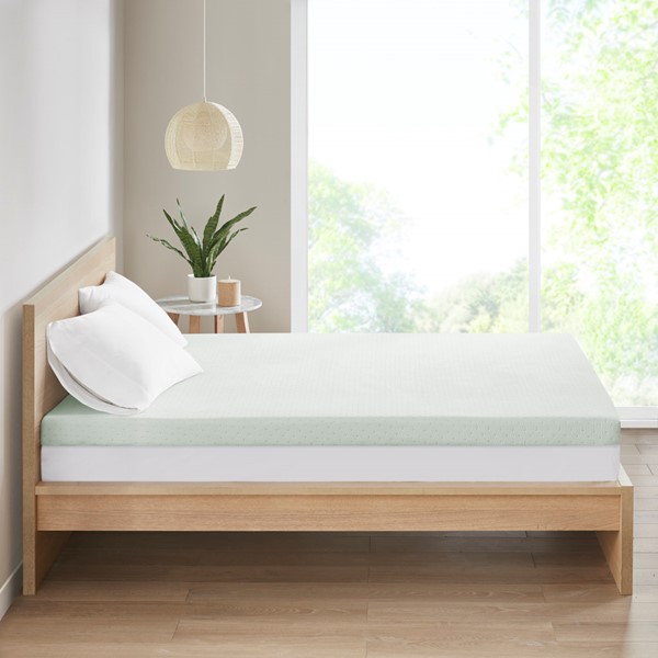 The Clean Spaces 3" Green Tea Foam Topper with Cooling Removable Cover provides eco-friendly and durable comfort to your bed. Made from soft comforting memory foam, this mattress topper creates a custom fit for your body to give you a peaceful night’s sleep. A Green Tea infusion is added to the memory foam to maintain freshness and help eliminate odors, allowing you to wake up feeling restored and refreshed. The topper also comes with a zippered machine washable removable cover that features a unique fabrication that’s always "crisp and cool to the touch". This foam topper is also OEKO-TEX certified, meaning it does not contain any harmful substances or chemicals to ensure quality comfort and wellness. The packaging technology allows the topper to be efficiently compressed into one box that’s easily shipped to your door. Simply unbox, unroll, and this topper does the rest, expanding to its original shape within 72 hours.