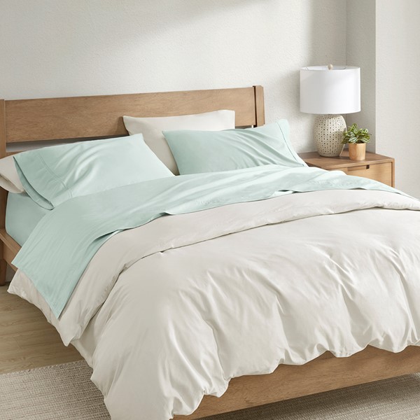The Clean Spaces 300TC BCI Cotton 4PC Sheet Set with Z Hem offers a fresh comfort to update your bedroom. This solid sheet set features a 300 thread count that provides an ultra-soft finish and a deep pocket fits up to 18-inch deep mattress. The Z-style hem stitching adds a decorative touch, while also adding durability to the seams. Partnering with the Better Cotton Initiative, these sheets are made from environmentally friendly and sustainably sourced cotton to improve not just your quality of life, but the planet’s too. Machine washable for easy care, this cotton sheet set is OEKO-TEX certified, meaning it does not contain any harmful substances or chemicals to ensure quality comfort and wellness.