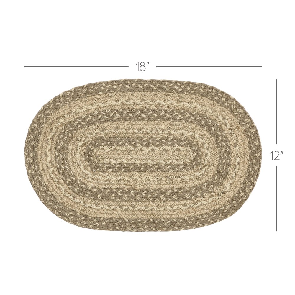 Create a joyful table for friends and family to gather round on cool spring nights with modern, neutral colors and classic texture. The Cobblestone Jute Placemat includes an individual oval placemat measuring 12x18 inches made from a premium Jute blend. The rich texture of braided jute is given a modern twist with soft creme, tan and grey taupe tones for elegant, modern farmhouse style. Complete your tabletop decor with other pieces from the Cobblestone Jute Collection by VHC for cozy cottage or shabby chic style.