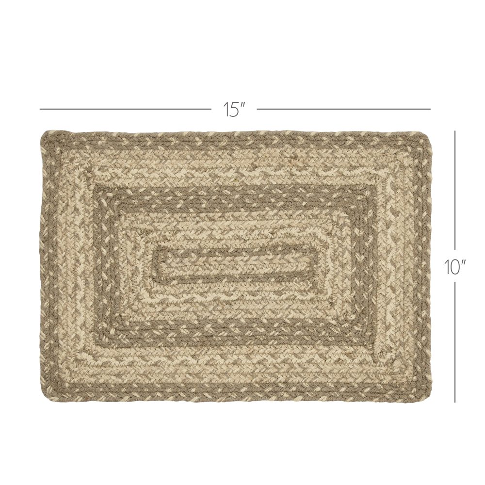 Create a joyful table for friends and family to gather round on cool spring nights with modern, neutral colors and classic texture. The Cobblestone Jute Placemat includes an individual rectangular placemat measuring 10x15 inches made from a premium Jute blend. The rich texture of braided jute is given a modern twist with soft creme, tan and grey taupe tones for elegant, modern farmhouse style. Complete your tabletop decor with other pieces from the Cobblestone Jute Collection by VHC for cozy cottage or shabby chic style.