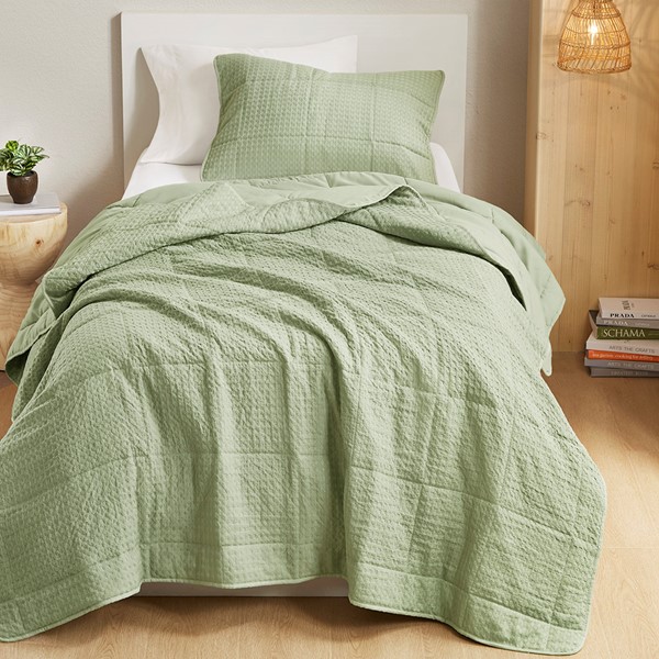 Modernize your bedroom with our elegantly chic bedding set, showcasing a quilted pattern in an upgraded waffle-like woven texture. This unique take on a classic design combines lightweight fabric with exceptional breathability and comfort, providing a delightfully soft and fluffy feeling all year round.