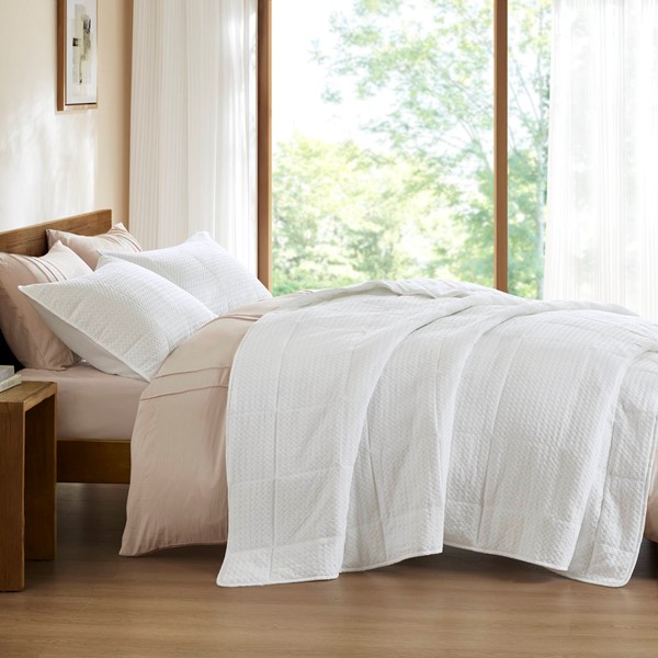 Comfort Spaces Aera Waffle Weave Textured Quilt Set in White, King/Cal King AM14-0376