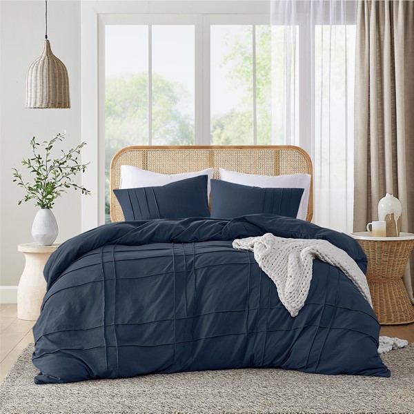 Duvet/sham: Washed microfiber with pintuck pleats on face, solid microfiber reverse.