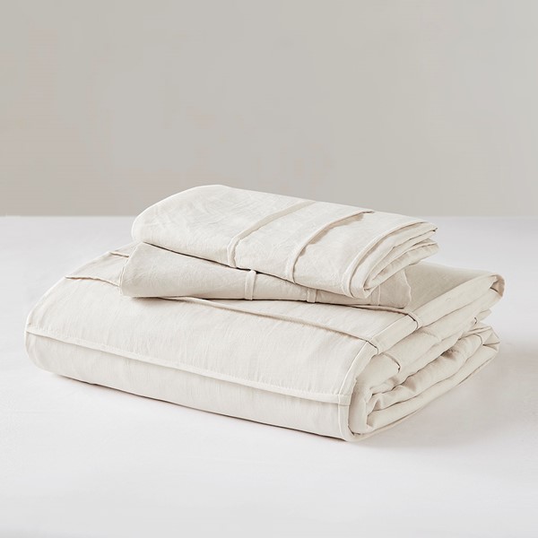 Comfort Spaces Walker Soft Washed Pleated Duvet Cover Set in Neutral, King AM12-0039