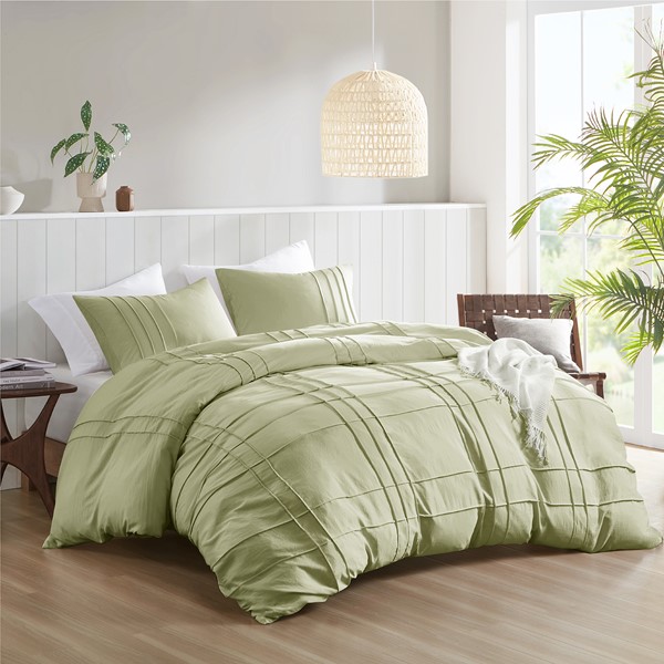 Comfort Spaces Walker Soft Washed Pleated Duvet Cover Set in Sage, Queen AM12-0147