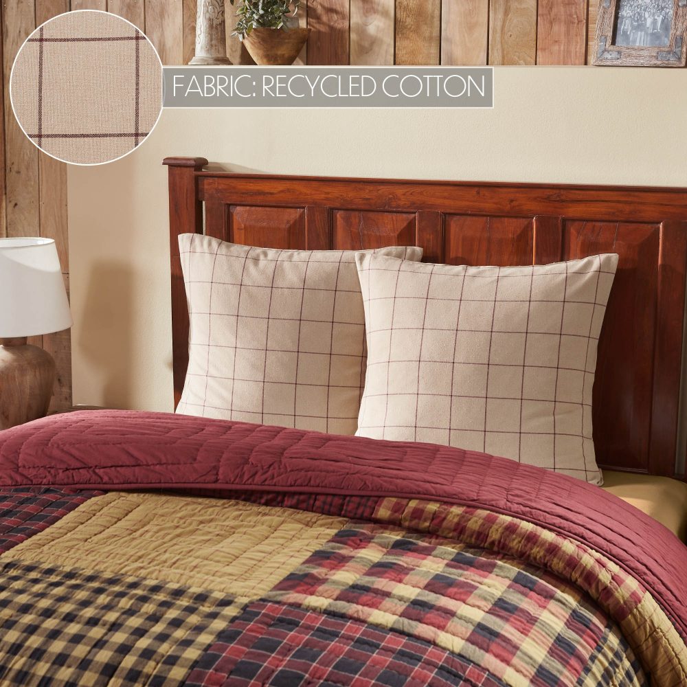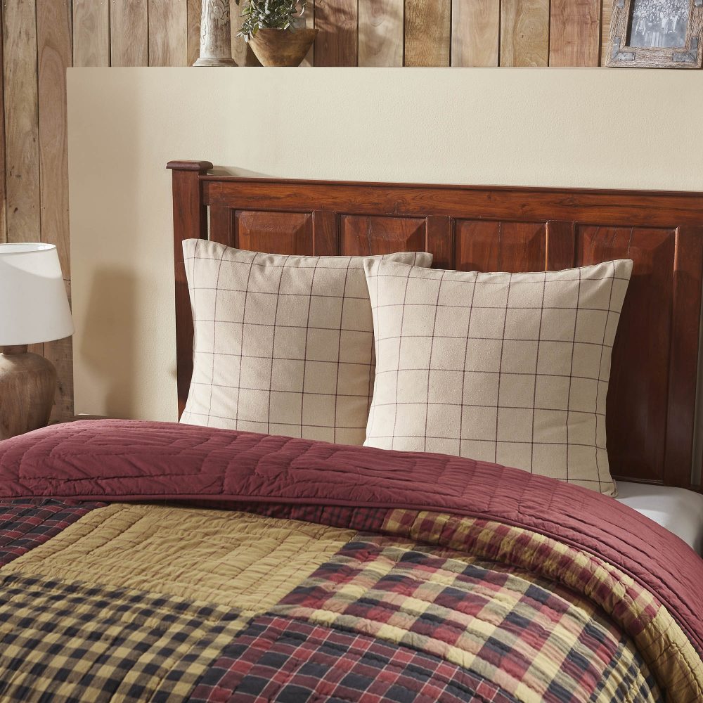 Elevate your bedroom or living room decor with the VHC Brands Euro Sham from the Connell Collection. Measuring 26x26 inches, this burgundy cotton Euro sham cover adds a touch of primitive and country charm to your space. The flat weave texture and windowpane pattern create a classic yet stylish design, making it a perfect bedding accessory for your bed, couch, or sofa. Please note that this listing is for a single Euro sham cover, and an insert is not included. The Connell Collection Euro sham cover offers both decorative appeal and functionality. Crafted with care from high-quality cotton, this 26x26-inch sham features an overlap closure for easy removal and cleaning. Whether you're looking to enhance your bedroom decor or add a cozy touch to your living room, this Euro sham fits the bill. Its square shape and burgundy color make it a versatile addition to your home, effortlessly blending with various design styles, from boho to rustic. Upgrade your home decor with the VHC Brands Euro Sham Cover from the Connell Collection. This square 26x26-inch pillow sham in burgundy provides a primitive and country-inspired look with its flat weave and windowpane pattern. Made from premium cotton, it ensures both durability and comfort. The overlap closure allows for convenient use, whether you want to decorate your bed, couch, or sofa. Please note that this listing includes one Euro sham cover, and an insert is not included, giving you the freedom to choose your desired level of fluffiness.
