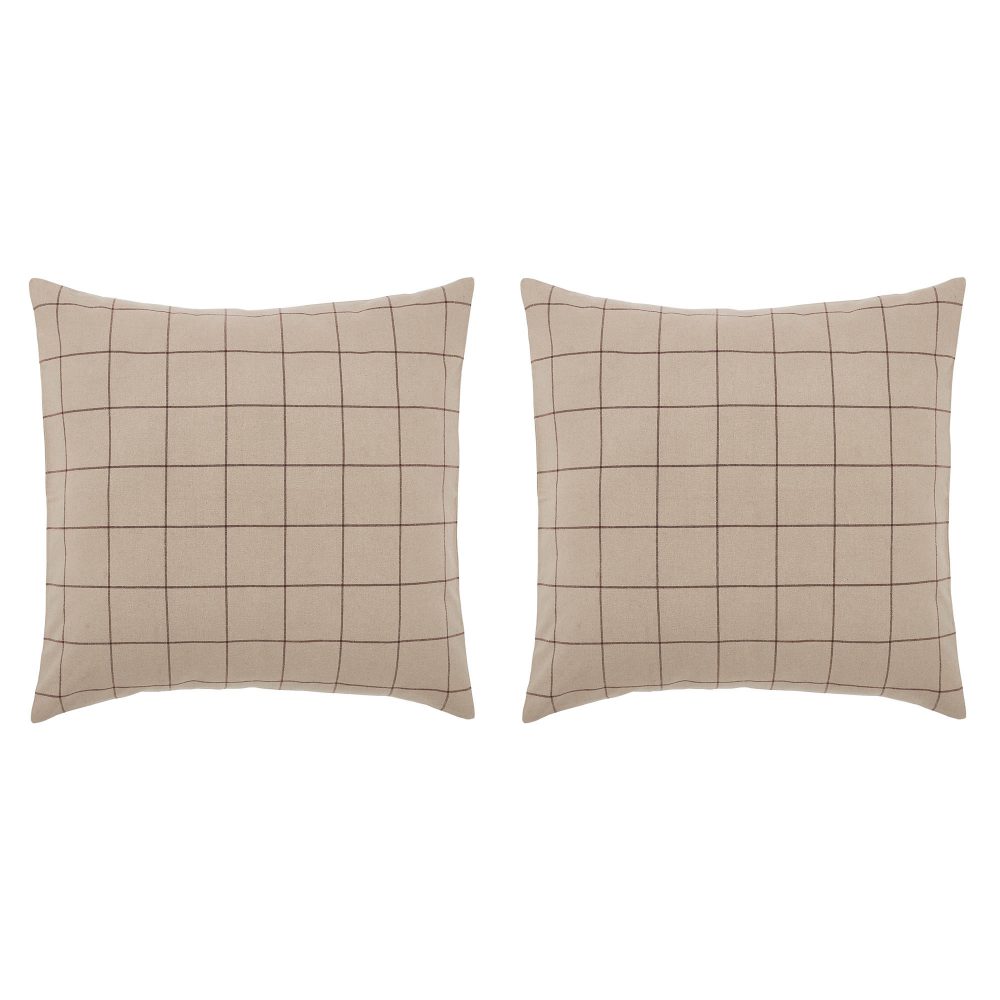 Introducing the VHC Brands Euro Sham Set of 2 from the Connell Collection, designed to infuse primitive charm into your bedroom or living room decor. These square 26x26-inch Euro sham covers in elegant burgundy bring a touch of country-inspired warmth to your space. The windowpane pattern and flat weave design create a timeless look that adds character and coziness. Crafted from high-quality cotton, these Euro sham covers are soft and durable, making them an ideal choice for your bedding accessory needs. The set includes two decorative cases, perfect for enhancing your bedroom or living room decor effortlessly. These Euro sham covers feature overlap closures for easy insertion and removal of your pillows, allowing you to switch up your style with ease. Upgrade your interior decor with these decorative Euro shams, which blend a primitive, country-inspired style with modern appeal. Their large size and premium construction make them stand out as stylish yet functional cases. Elevate your bed, couch, or sofa with this set of two Euro sham covers, offering a charming accent that brings comfort and beauty to any space.