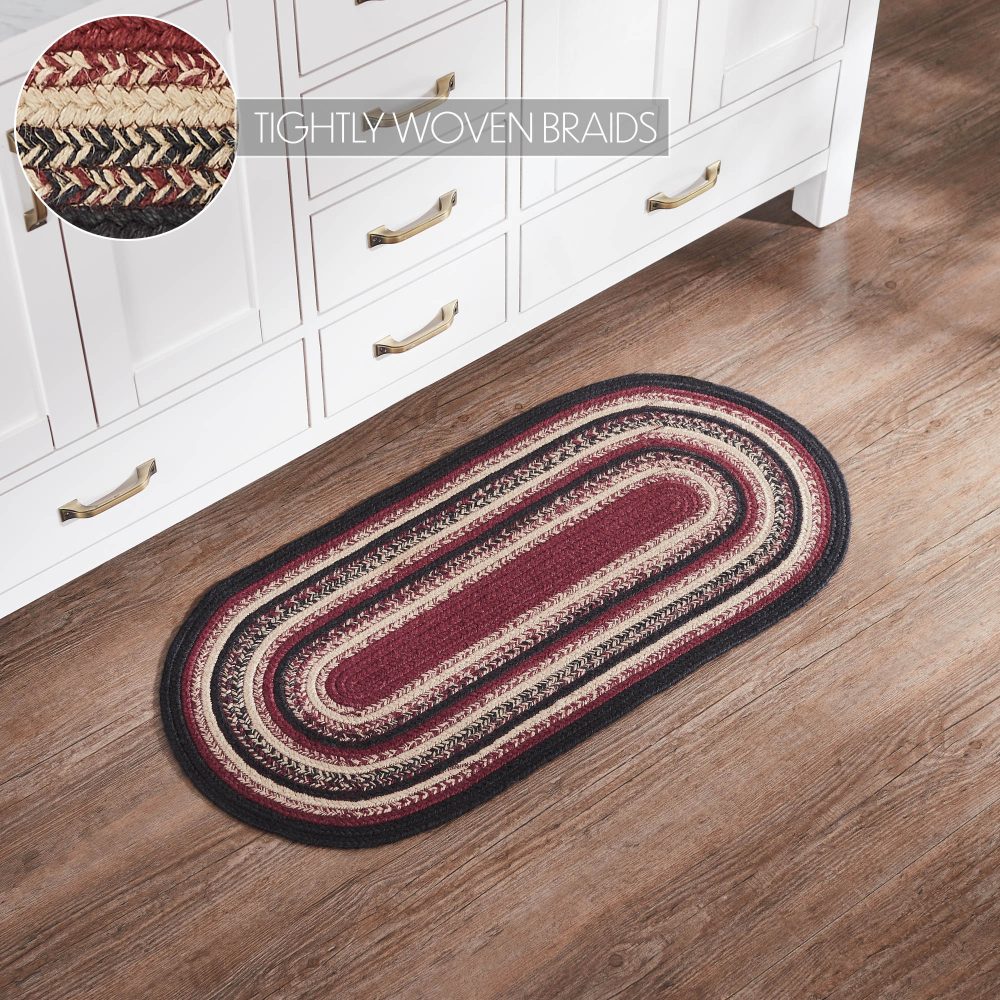 Introducing the VHC Brands Jute Rug from the Connell Collection, an exquisite addition to your primitive or country-inspired home decor. This oval-shaped rug, measuring 17x36 inches, boasts a timeless braided design that brings rustic charm to any room. Crafted from natural jute fibers, it's the perfect accent piece for your living room, kitchen, or entryway. Features non-slip latex backing to keep the rug in place. Elevate your home decor with the Connell Collection Jute Rug, designed to withstand daily use and provide lasting beauty. Its braided pattern and soft texture create a welcoming atmosphere, making it an ideal choice for your country or primitive-themed living spaces. Transform any room with this 17x36-inch oval rug, bringing warmth, character, and functionality to your home.