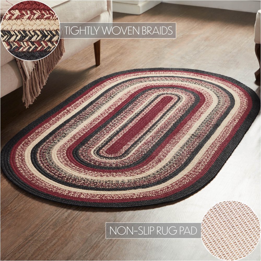 Elevate your rustic farmhouse decor with the VHC Brands Jute Rug from the Connell Collection. This oval area rug measures a generous 36x60 inches and features a classic braided design, making it the perfect accent for your country-inspired living spaces. Crafted from natural jute fibers, it combines the charm of primitive styling with eco-friendly materials. The Connell Collection Oval Jute Rug brings a touch of warmth and texture to any room. Its braided construction adds a timeless appeal that complements both traditional and modern farmhouse decor. This rug is designed to withstand high traffic areas and is suitable for indoor use. It comes complete with a non-slip pad for added stability and safety. Crafted with care and attention to detail, this jute rug from the Connell Collection offers a textured and inviting addition to your living room, kitchen, or entryway. The natural jute fibers provide a soft underfoot feel while adding a rustic touch to your decor. With its large size and versatile oval shape, it's a functional and stylish choice for enhancing the look and comfort of your home.