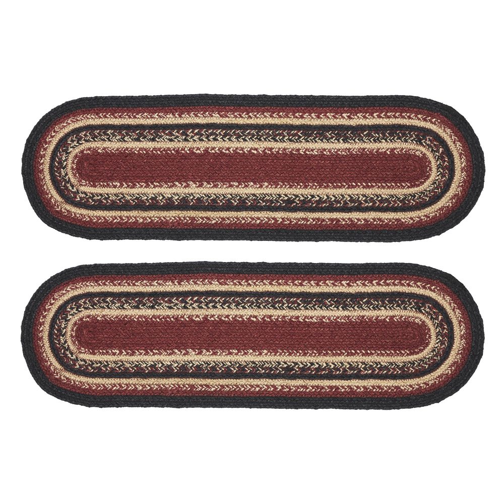 - Farmhouse Stair Tread Set: Enhance the rustic charm of your home with this set of two Country Black jute stair treads from the Connell Collection. Crafted in an oval shape, these braided treads measure 8.5×27 inches, perfect for protecting your living room or entryway stairs.