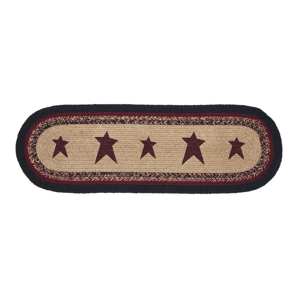 Enhance the rustic charm of your dining room or kitchen with the VHC Brands Braided Cotton Table Runner from the Connell Collection. This oval table runner, measuring 8x24 inches, adds a touch of primitive and country style to your farmhouse-themed table setting. Crafted with a braided design and high-quality recycled cotton, it introduces textured accents to your space. The Connell Collection Braided Cotton Table Runner features stenciled stars in rich burgundy, making it an eye-catching accent for your dining table. Whether you're hosting a formal dinner or a casual meal, this runner complements your decor with its timeless appeal. The braided texture and oval shape create a unique and textured surface for your table setting, enhancing your dining experience. This table runner not only enhances your dining decor but also offers practicality and durability. It's easy to clean and can withstand daily use, making it an ideal choice for busy households. Elevate your dining space with the Connell Collection Braided Cotton Table Runner, a versatile accent that seamlessly blends primitive and country styles while adding warmth and style to your home.