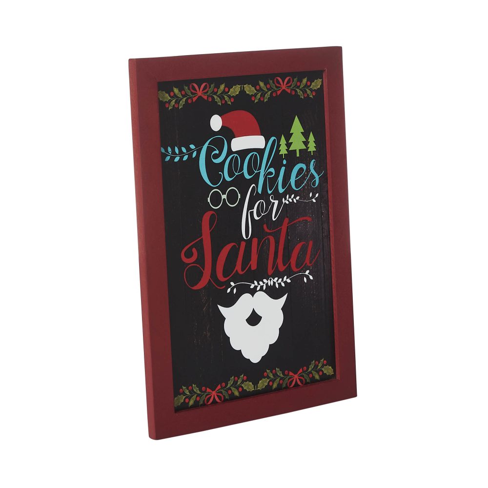 - Enhance your Christmas decor with this charming framed wall hanging sign, measuring 12×8 inches, featuring the whimsical message “Cookies for Santa” adorned with a classic Santa hat and beard motif, adding a festive touch to your holiday ambiance.