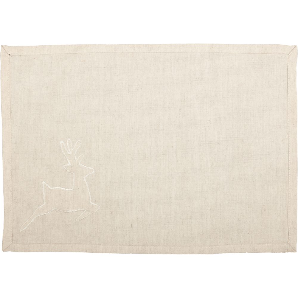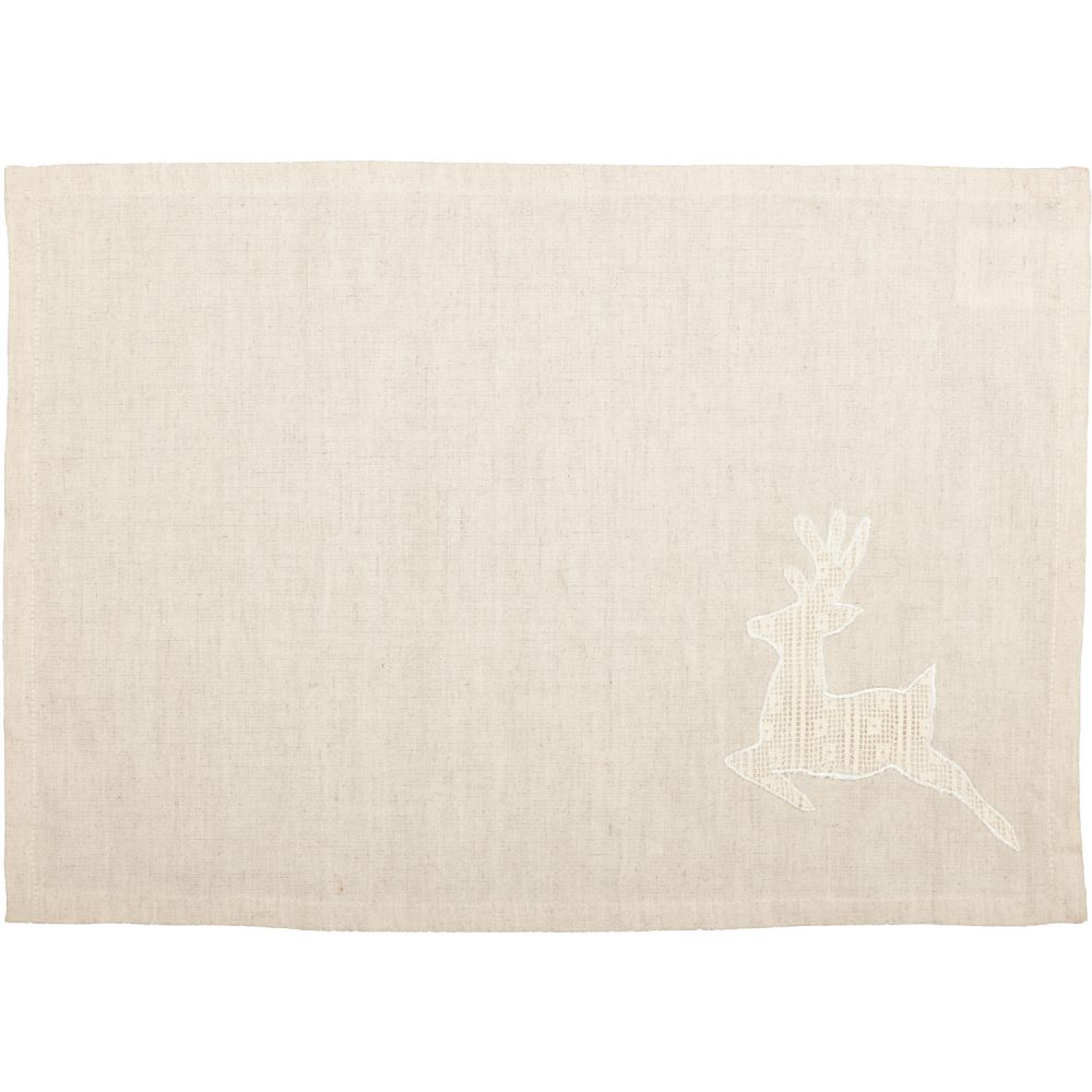 Bring a mixture of simplicity and elegance to the table this holiday season with the Creme Lace Deer Placemat Set. Beautifully featuring a large lace deer appliqued in the bottom right corner on a soft creme background for a touch of spirited Christmas charm.