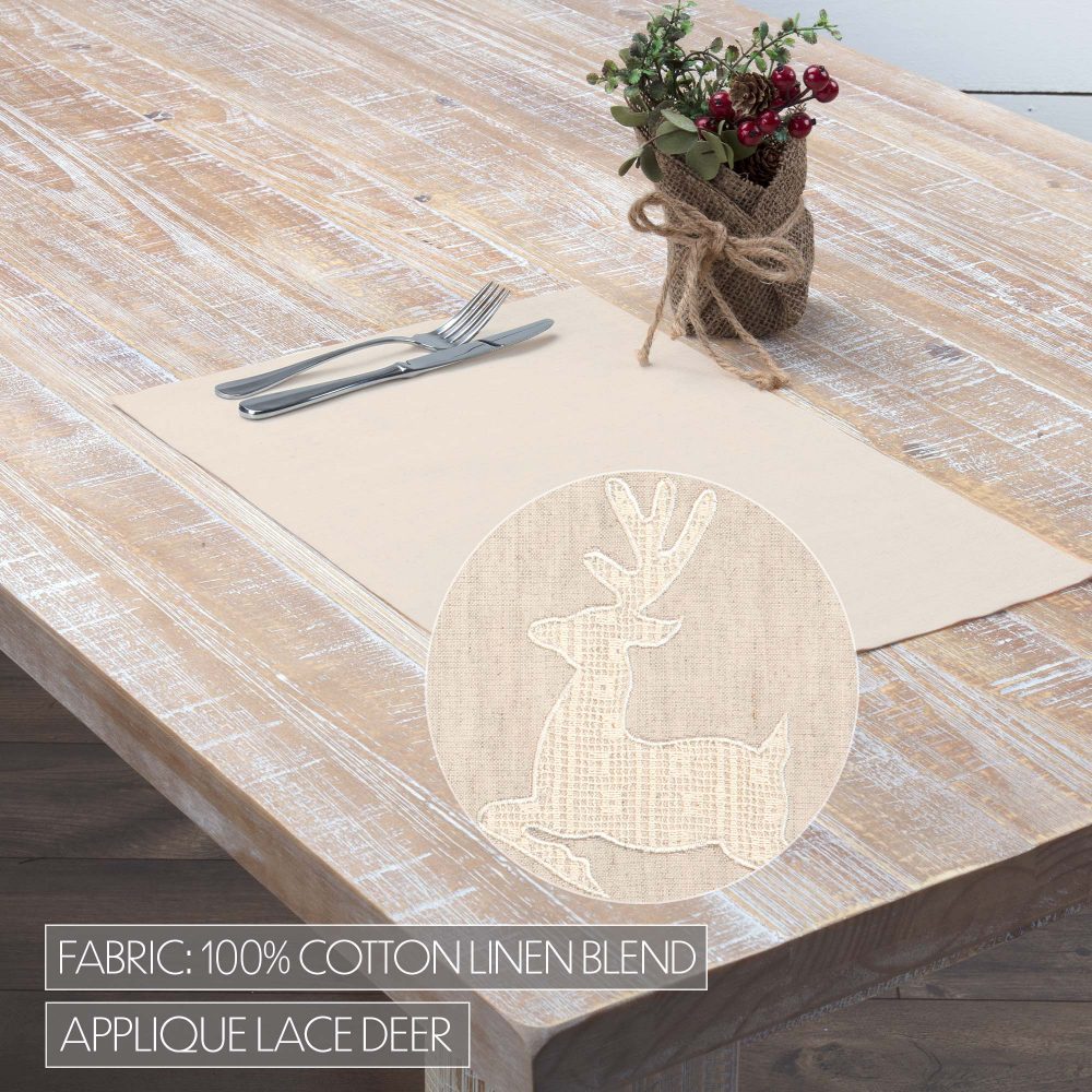 - HOLIDAY DECOR: Bring elements of farmhouse simplicity and elegance to your table this Christmas. Subtle color and a beautiful appliqued creme lace deer presents a festive look that works well with many different decor styles, including farmhouse and french country cottage looks.