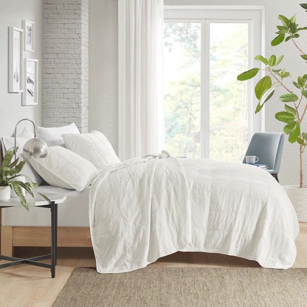 Coverlet and sham: Face: 100% cotton, with cord quilting, 100% Polyester fill. Garment dyed and washed finishing