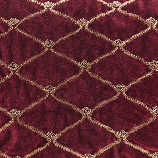 This sumptuous oblong pillow features foxtail stitched, net patterning with hand-beaded embellishments on a highly luxurious velvet cover. It comes with a removable white goose feather insert which is plump and soft to the touch.