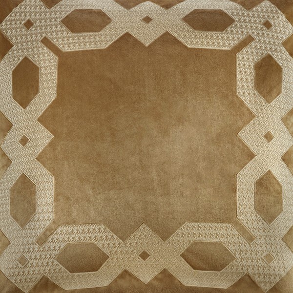 This decorative frame element is derived from geometric shapes and embroidered with metallic yarn using bold stitching lines. The luxurious velvet presents layered and varied color tones from different angles. It is soft to the touch and enjoyable to the eyes.