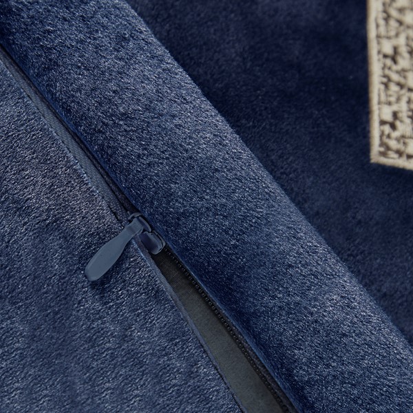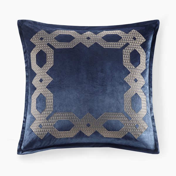 This decorative frame element is derived from geometric shapes and embroidered with metallic yarn using bold stitching lines. The luxurious velvet presents layered and varied color tones from different angles. It is soft to the touch and enjoyable to the eyes.