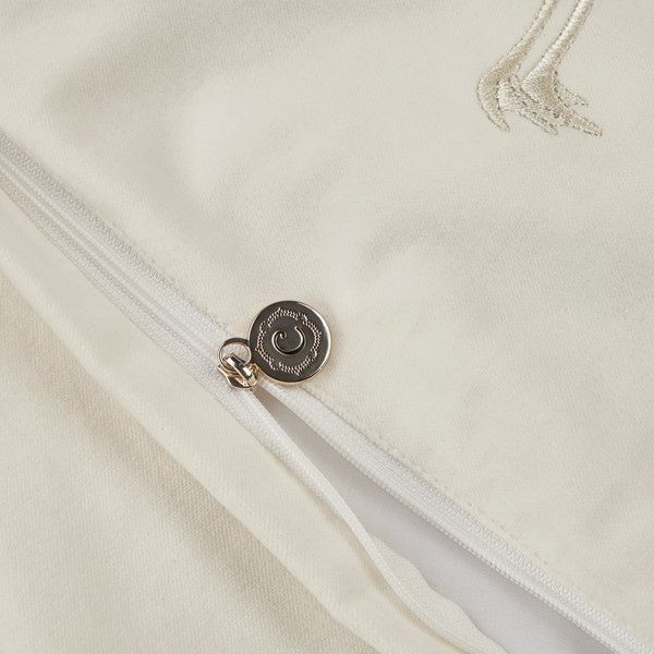 * YKK hidden zipper with luxury Croscill brand tag attached to the sham