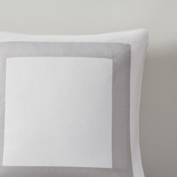 Blended with a high composition of natural linen with enhanced sheen from its long fibers to add structure and a sophisticated crip to the texture. The frame element is a two-sided patchwork design with an applique border to make the look modern, clean, and more dimensional.