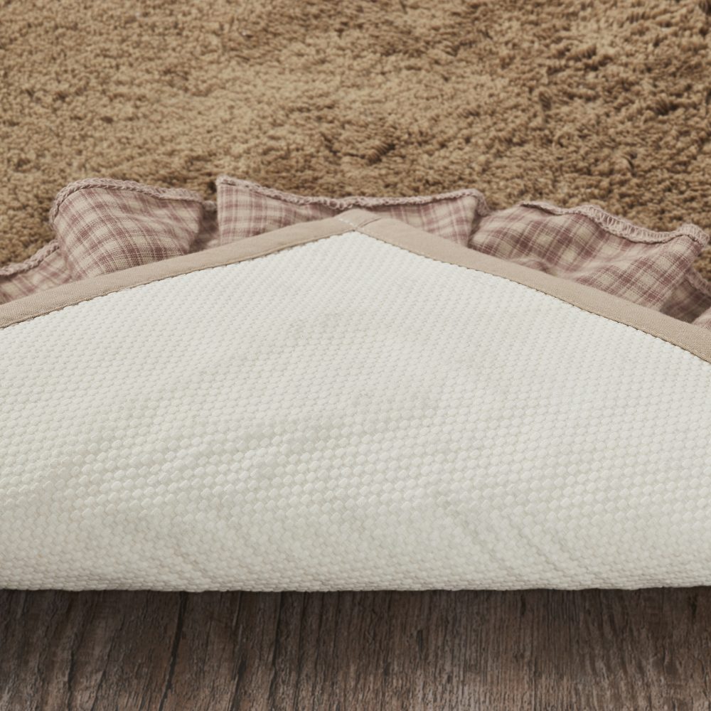 - PREMIUM BATH MAT: A high-quality core provides a thick cushion to sink your feet into and durable cotton to absorb water providing a safe and comfortable post-shower landing. The 27 by 48 inch rug features a ruffled edge with a double layer of tan plaid and vintage-inspired floral accented by ruched ruffle for texture and rustic country charm.