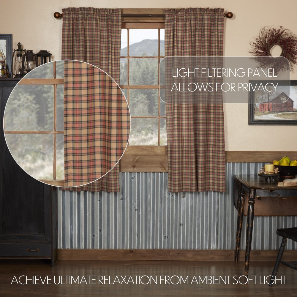- PRIMITIVE COUNTRY PANEL: Includes two 63 by 36 inch 100% cotton window panel with a 2-inch header and a 3.25-inch rod pocket. Includes two matching tiebacks.