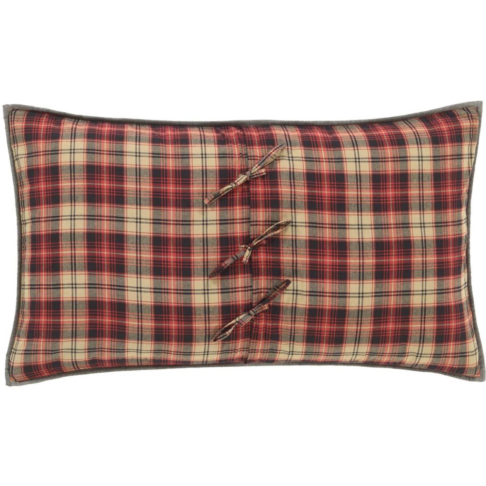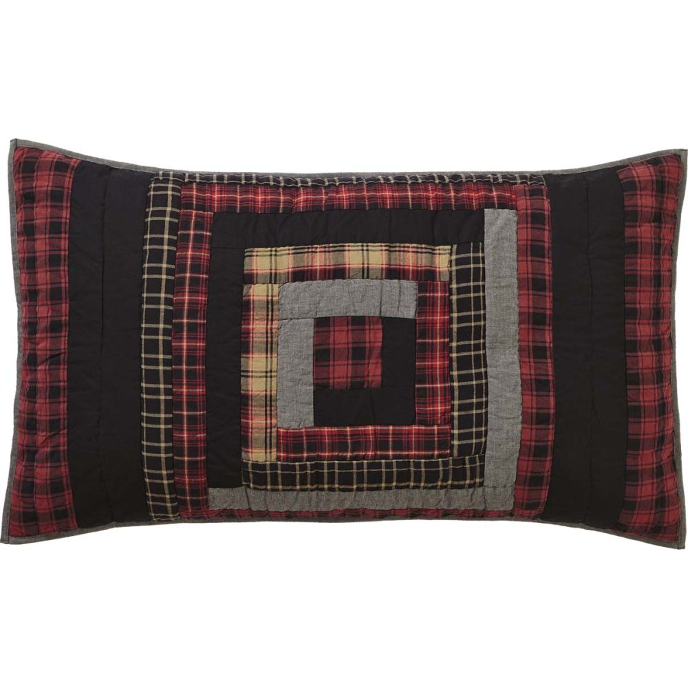 Bring a relaxed, woodsy feeling into your home with the Cumberland King Sham. This cozy pillow cover features a log cabin block pattern in chili pepper red, caviar black, and tan plaids and dark chambray weave that is reminiscent of a woodland cabin retreat. This 21x37 patchwork sham transforms a regular standard-sized pillow into a timeless decorative piece that adds warmth to your bedroom. Constructed with 100 percent cotton.