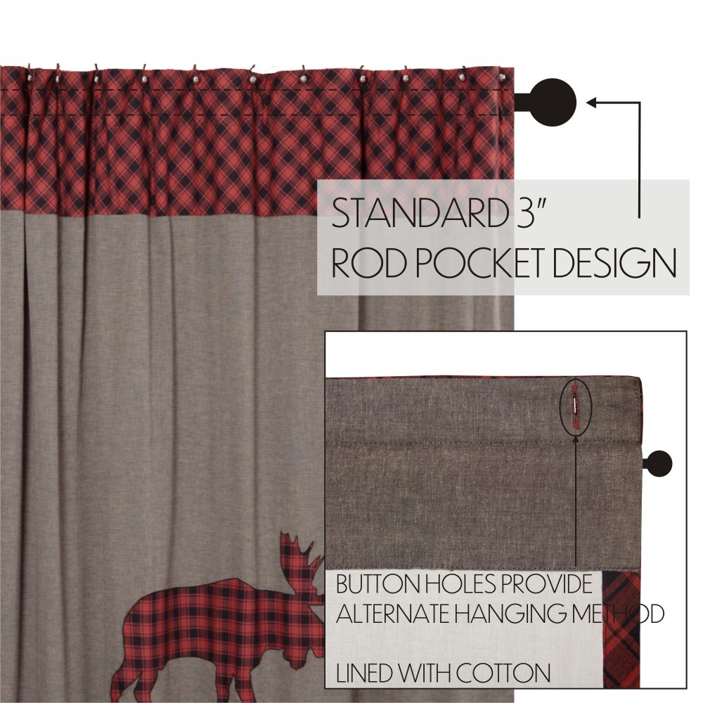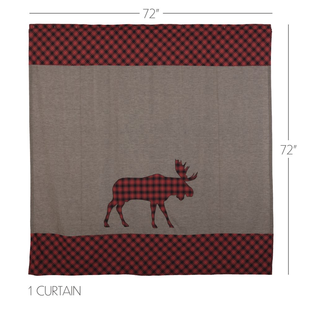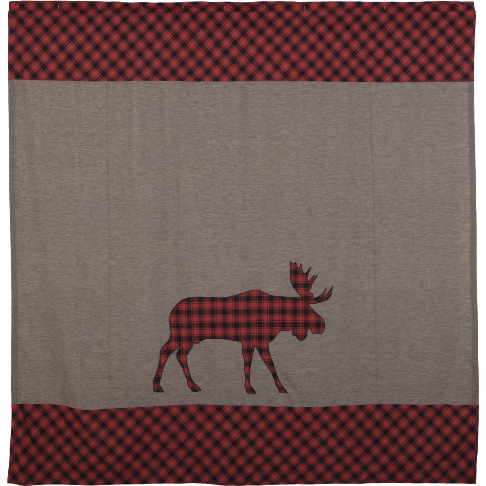 Decorate your bathroom with the perfect blend of simplicity and rustic country charm with the Cumberland Moose Applique Shower Curtain. Featuring a deep grey base with a rustic red and black plaid showcasing a bold moose applique accent, our 72x72 fabric shower curtain provides a rustic country touch to your decor. This machine washable, 100% cotton shower curtain includes button holes for shower hooks and a rod pocket for versatility and convenience.