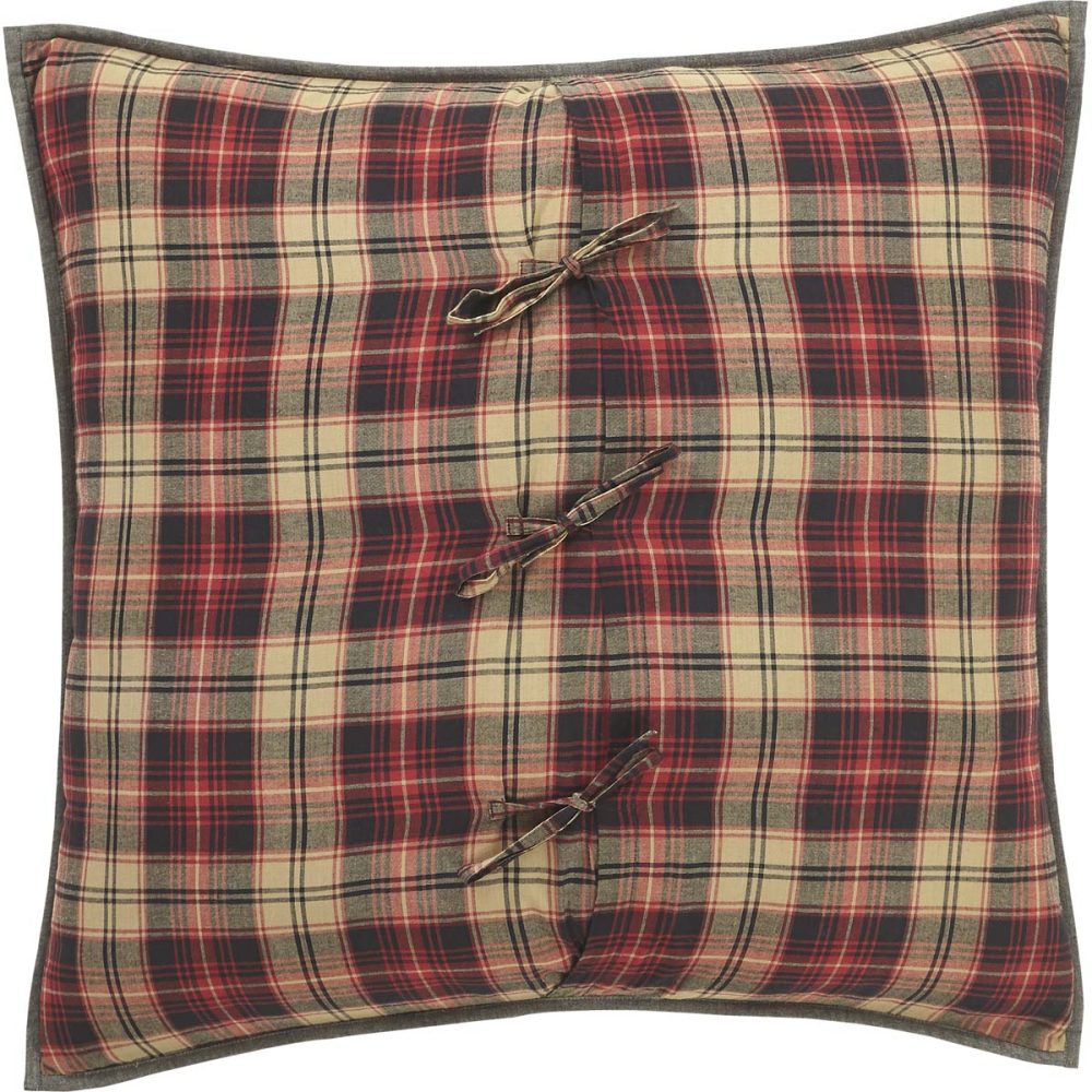 - RUSTIC EURO SHAM: Includes one 26 by 26 inch Euro Sham with tie closures. Fill pillow not included. Reverses to a simple black, khaki and red plaid.
