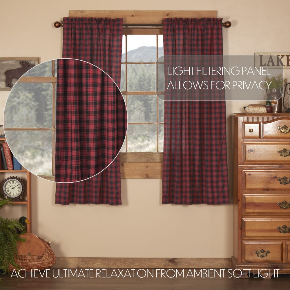 Decorate your windows with a touch of bold, rustic country style with this charmingly designed and thoughtfully crafted window panel set. Displaying a timeless country look with a bold, cabin-inspired buffalo plaid in chili pepper red and caviar black, the Cumberland Short Panel Set 63x36 enhances your home decor with a relaxed, cozy lodge feel. This 100% cotton curtain set includes two panels with a white lining to prevent fading and provide additional privacy. It includes a rod pocket for easy hanging.