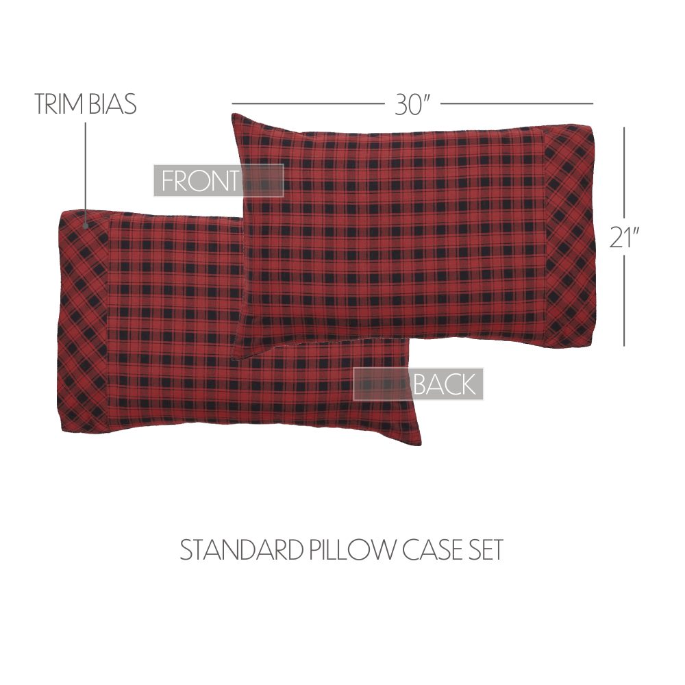 Let this chili pepper red and caviar black buffalo check pillowcase bring log cabin flair to your rustic country bedroom. The Cumberland Standard Pillow Case Set provides two pillow covers that look warm and cozy on any bed with a relaxed, wilderness style. These 21x30 inch pillow cases are machine washable, iron-safe and made from a super soft 100 percent cotton.