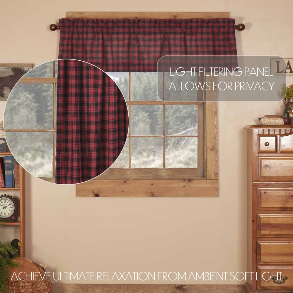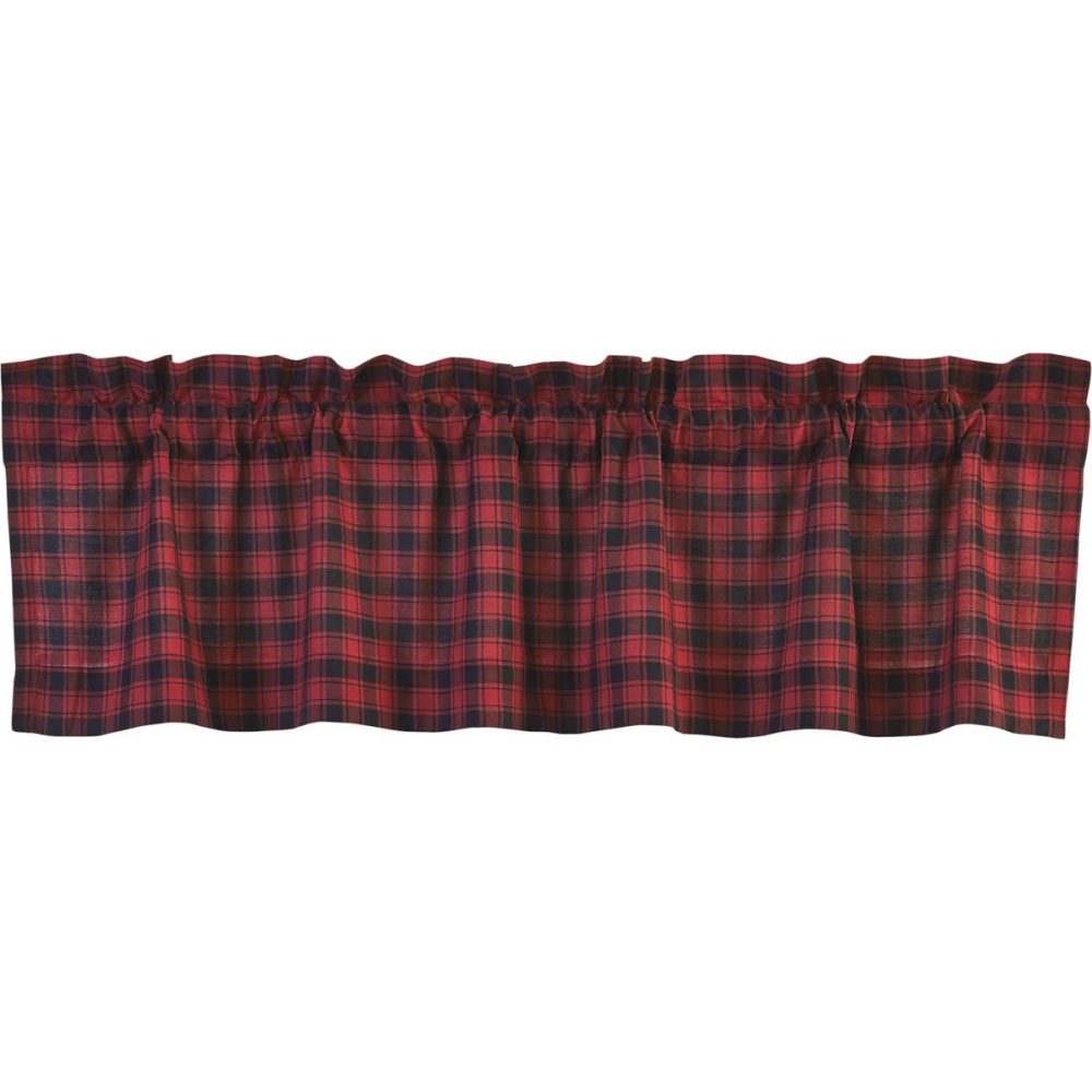 Bring a relaxed, casual feel to your home with bold caviar black and bright chili pepper red. The Cumberland Valance measure 16x60 inches and features a rustic plaid base in a traditional plaid for a warm, hunting lodge look. The fully lined rustic country valance features a generous 3.25 inch rod pocket and loops for easy hanging.
