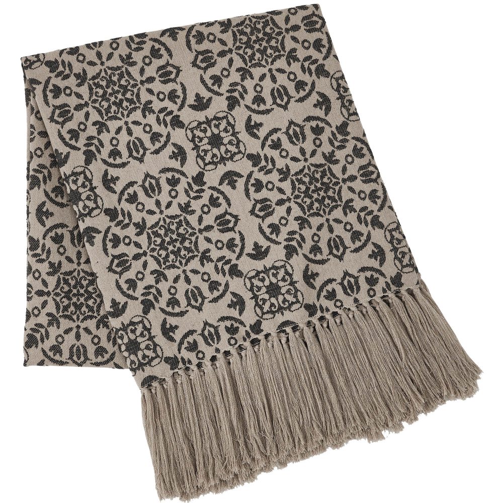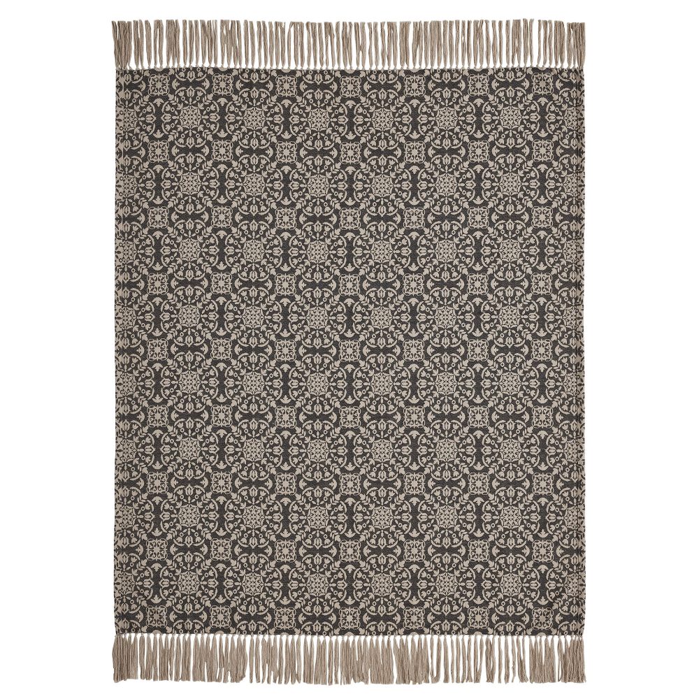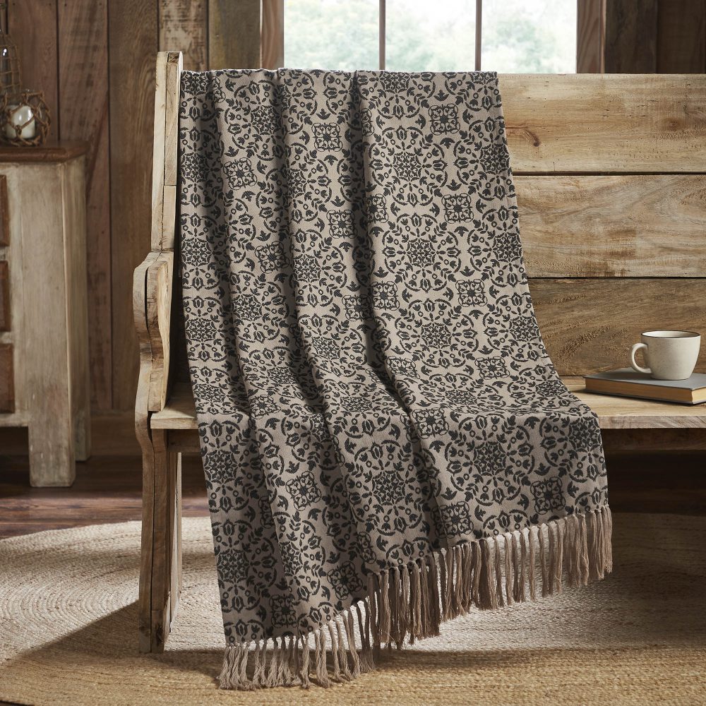 Elevate the charm of your bedroom and living room with the VHC Brands Custom House Black & Tan Jacquard Woven Throw. This cozy 50x60-inch cotton blanket, part of the Custom House Collection, is adorned with a primitive country medallion pattern. The natural color and textured waffle weave fabric create a warm and inviting atmosphere in your home. The primitive medallion design on this woven throw adds a touch of country elegance to your decor. Its textured waffle weave not only offers a rustic appeal but also provides a soft, comfortable feel. Whether you're draping it over your sofa or using it for extra warmth in your bedroom, this throw complements your interior design effortlessly. With its intricate medallion pattern and textured waffle fabric, the Custom House Black & Tan Jacquard Woven Throw combines timeless style and cozy comfort. Whether you use it for snuggling on chilly evenings or displaying it as an accent piece, this blanket brings character and warmth to your living space.