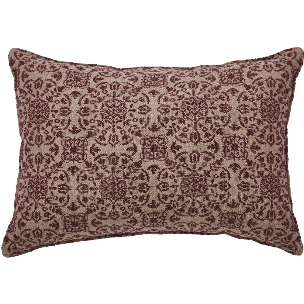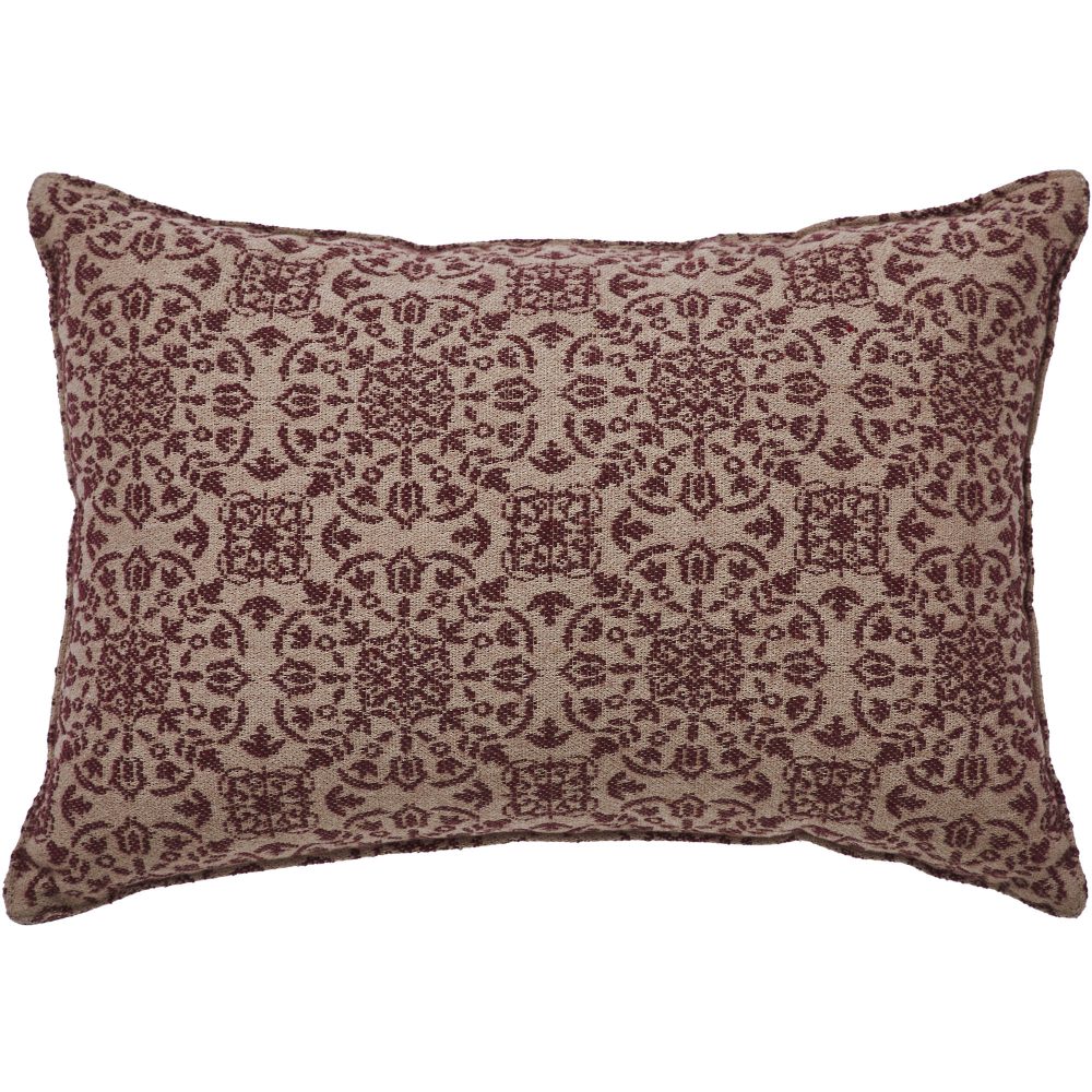 Introducing the VHC Brands Custom House Burgundy & Tan Jacquard Pillow, a sophisticated addition to your primitive and country decor. This 9.5x14 rectangular cotton pillow, generously filled with soft polyester, is the ideal choice for your couch, bed, or studio. Adorned with a textured medallion design from the Custom House Collection in natural tones, this decorative throw pillow adds a touch of timeless elegance to your space. Enhance your primitive and midcentury modern decor with the Custom House Burgundy & Tan Jacquard Pillow. Its generous size and textured medallion pattern make it a versatile accent for your home. Whether you need lumbar support on your couch or a stylish cushion for your bed, this pillow seamlessly blends with any neutral color scheme, creating a warm and inviting atmosphere. Elevate your decor with this decorative pillow, a statement piece that complements your style, whether it's country, midcentury modern, or simply neutral. Elevate your home's ambiance with the VHC Brands Custom House Burgundy & Tan Jacquard Pillow, a fusion of timeless design and modern comfort. The natural hues and textured medallion pattern make this 9.5x14 rectangular pillow a versatile addition to your decor. Crafted from top-grade cotton and filled with soft polyester, it provides the perfect blend of style and comfort. Add a touch of sophistication to your living space with this Custom House Jacquard Pillow.