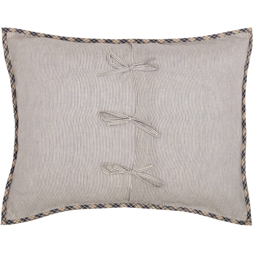 - FARMHOUSE HOME DECOR: Timeless patterns such as ticking stripes and plaids enhance the vintage farmhouse look of this cozy patchwork sham while the classic star adds a touch of eye-catching country appeal. The reverse side features washed blue and vintage white ticking stripes with ties in the back for easy opening and closing.