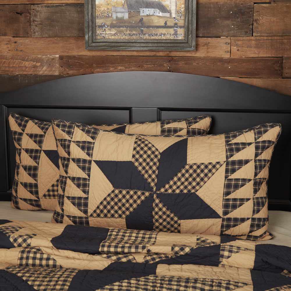 Instantly transform your home with the 21x37 Dakota Star King Sham. Rich and beautiful rustic country black and tan colors add a primitive element to your rustic setting while complementing your decor. The straight edge, stitch-in-the-ditch and echo quilting, and tie closures complete the look for a classic primitive decor approach with a touch of rustic appeal.