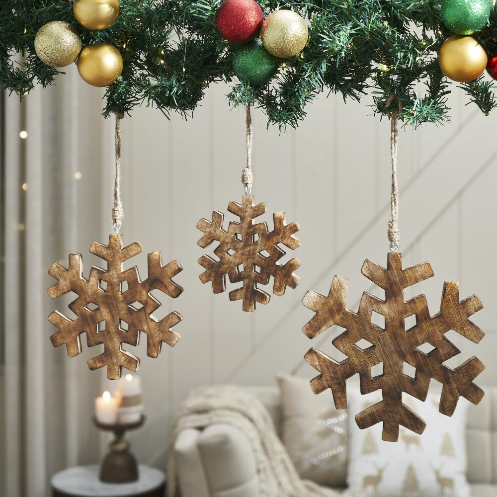 - Charming Snowflake Design: Features three snowflake cutout ornaments in dark brown, bringing a rustic, wintery touch to your Christmas and holiday decor.