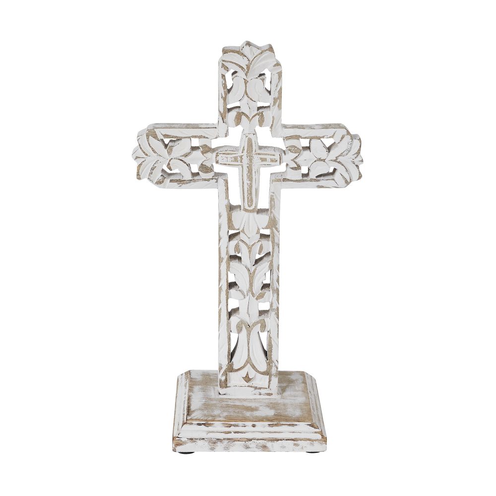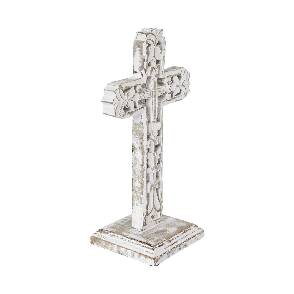 Distressed White Ornate Wooden Cross w/ Base 13×7.5×5