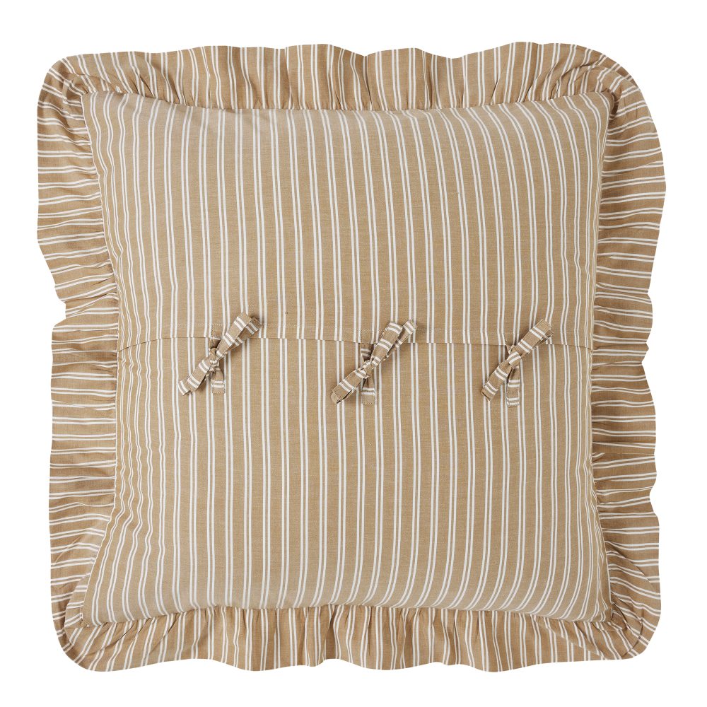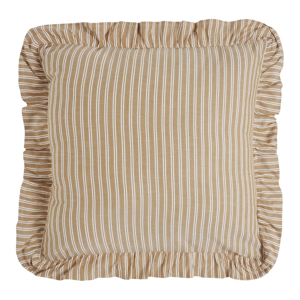 Add charming, vintage country style to your home with the Dorset Fabric Euro Sham. This 26x26 pillow cover features rich and beautiful golden tan and white striping for a warm and comfortable country feel. The generous ruffled edging and tie-style closures complete the look for a flexible accessory that can complement both cottage style bedding and provide a finishing touch to a bench or chair to create the coziest spot in the house. Coordinates with the Dorset Collection from VHC for a complete vintage farmhouse bedding set full of character and charm.