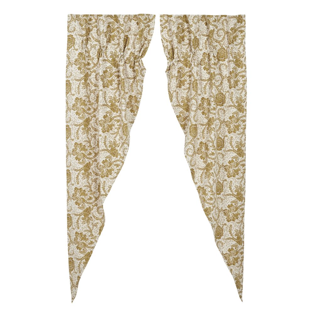 The Dorset Gold Floral Prairie Long Panel Set creates a relaxed country feel for your home. Featuring a beautiful gold floral design with a vintage feel, these curtains are a versatile choice for accenting kitchens, laundry rooms, and more. The gracefully angled drapes perfectly frame windows providing a bit of polish for your home. Our fully lined prairie panels come with built in drawstrings to adjust each panel to meet your style needs, along with a curtain rod pocket for easy hanging.