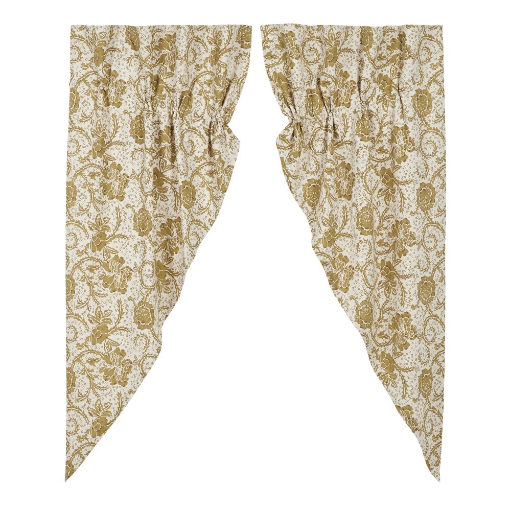 The Dorset Gold Floral Prairie Short Panel Set creates a relaxed country feel for your home. Featuring a beautiful gold floral design with a vintage feel, these curtains are a versatile choice for accenting kitchens, laundry rooms, and more. The gracefully angled drapes perfectly frame windows providing a bit of polish for your home. Our fully lined prairie panels come with built in drawstrings to adjust each panel to meet your style needs, along with a curtain rod pocket for easy hanging.