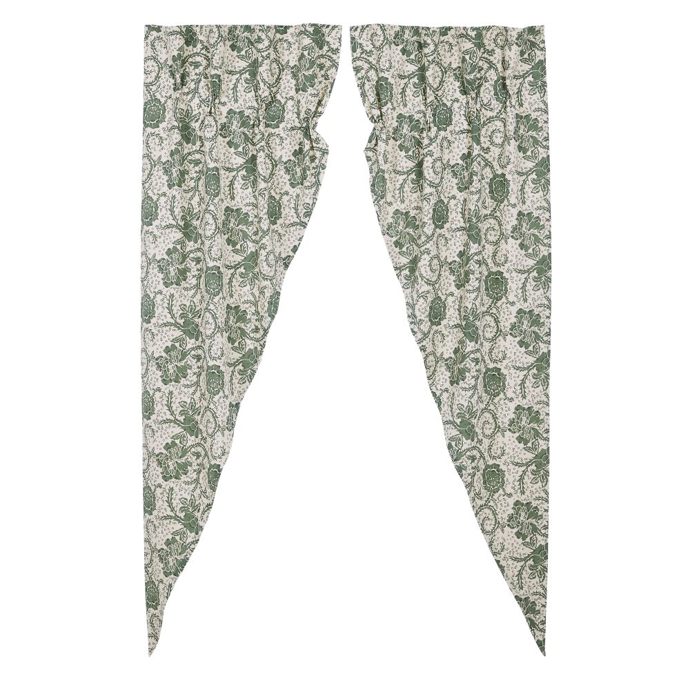 The Dorset Green Floral Prairie Long Panel Set creates a relaxed country feel for your home. Featuring a beautiful green floral design with a vintage feel, these curtains are a versatile choice for accenting kitchens, laundry rooms, and more. The gracefully angled drapes perfectly frame windows providing a bit of polish for your home. Our fully lined prairie panels come with built in drawstrings to adjust each panel to meet your style needs, along with a curtain rod pocket for easy hanging.