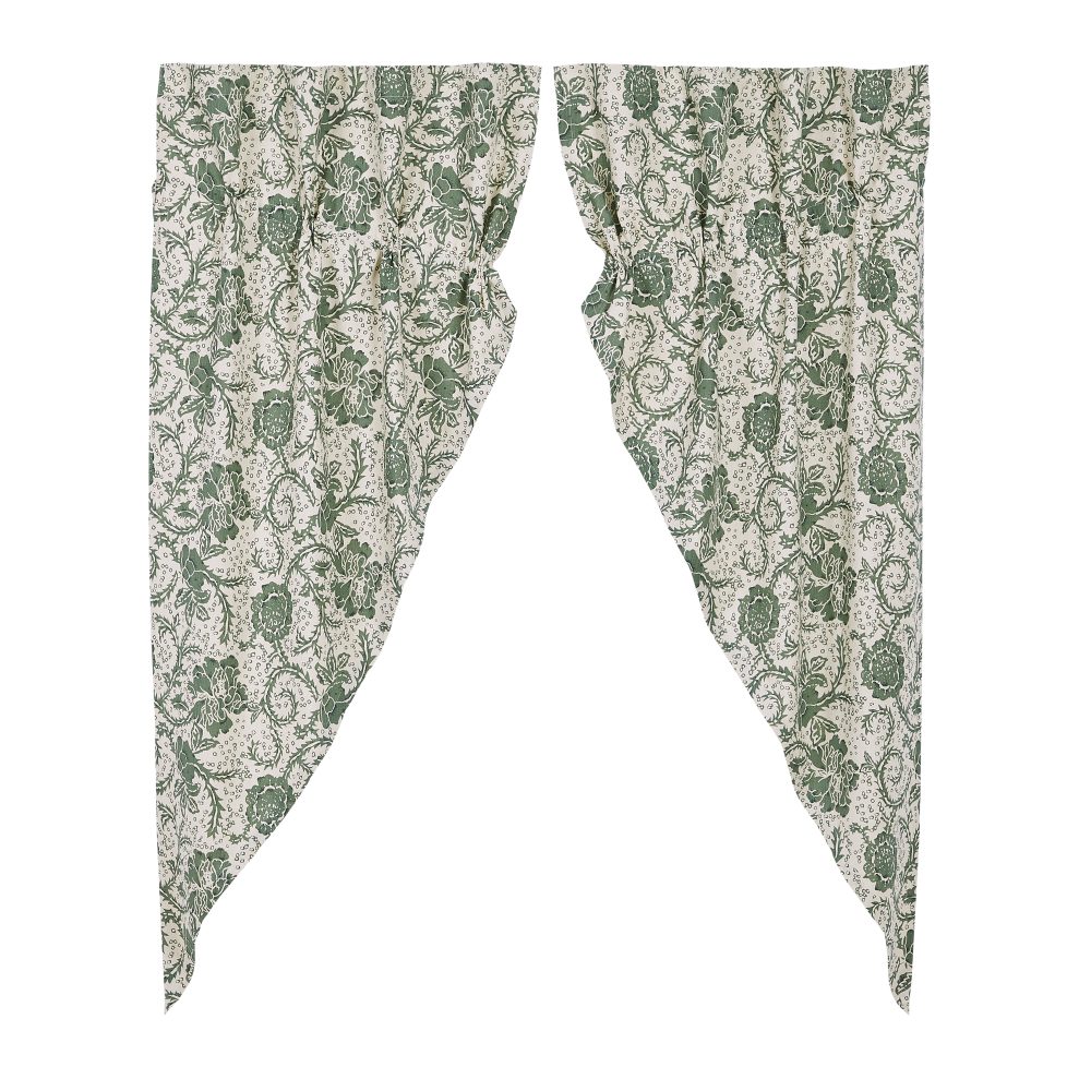 The Dorset Green Floral Prairie Short Panel Set creates a relaxed country feel for your home. Featuring a beautiful green floral design with a vintage feel, these curtains are a versatile choice for accenting kitchens, laundry rooms, and more. The gracefully angled drapes perfectly frame windows providing a bit of polish for your home. Our fully lined prairie panels come with built in drawstrings to adjust each panel to meet your style needs, along with a curtain rod pocket for easy hanging.
