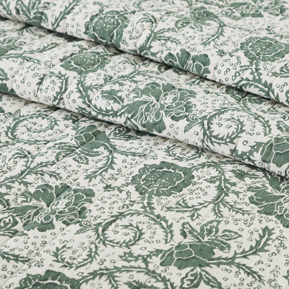 - DURABLE STITCHING: A solid dark basil green floral top is joined to a creamy reverse with high-quality channel stitching for classic country farmhouse style.