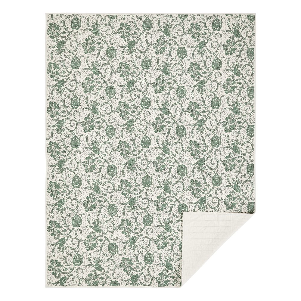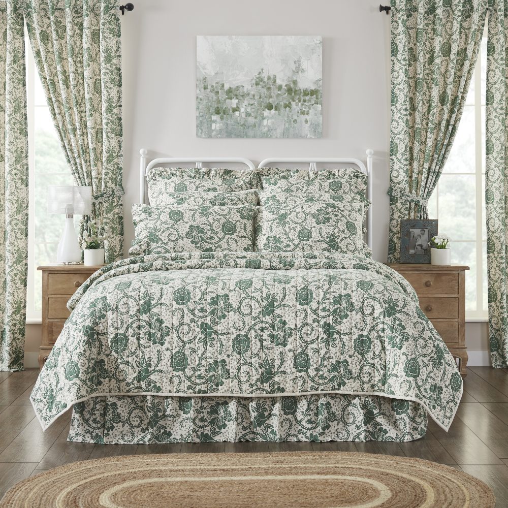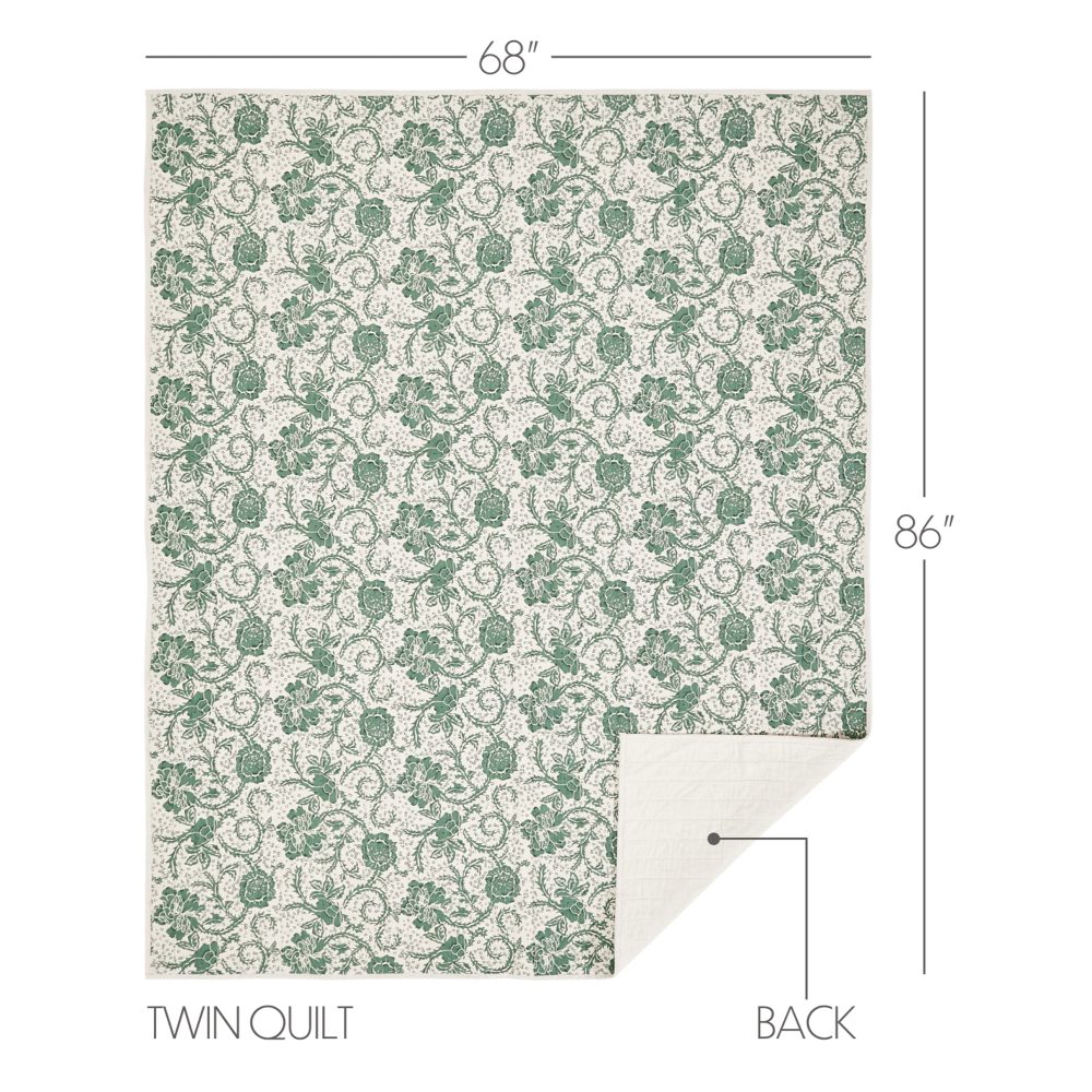 A floral print in rich basil green brings a sense of vintage elegance to your bed. The Dorset Green Floral Twin Quilt measures 68 by 86 inches. The farmhouse quilt is backed by a warm and neutral natural creme fabric and features cotton batting for extra warmth and high-quality channel stitching. A sturdy, 100 percent cotton shell creates a soft touch with superior durability and easy care. The lightweight bedspread is machine washable and iron safe. Coordinates with the Dorset Collection from VHC for a complete vintage farmhouse look.