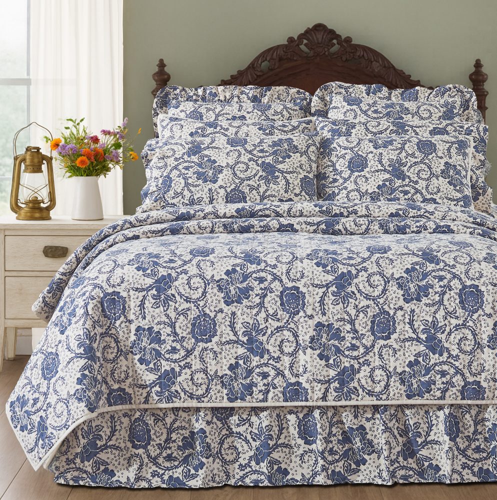 • DURABLE STITCHING: A solid navy blue floral top is joined to a creamy reverse with high-quality channel stitching for classic country farmhouse style.