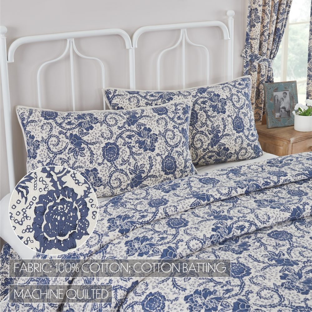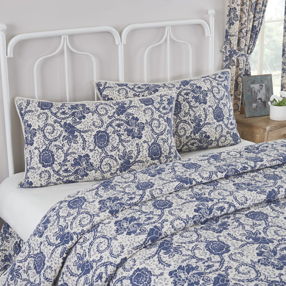 Add charming, vintage country style to your home with the Dorset Navy Floral King Sham. This 21x37 pillow cover features rich and beautiful navy blue and creme in a bold floral print for a warm and comfortable country feel. Reverses to a natural creme backing with tie-style closures. Coordinates with the Dorset Collection from VHC for a complete vintage farmhouse bedding set full of character and charm.