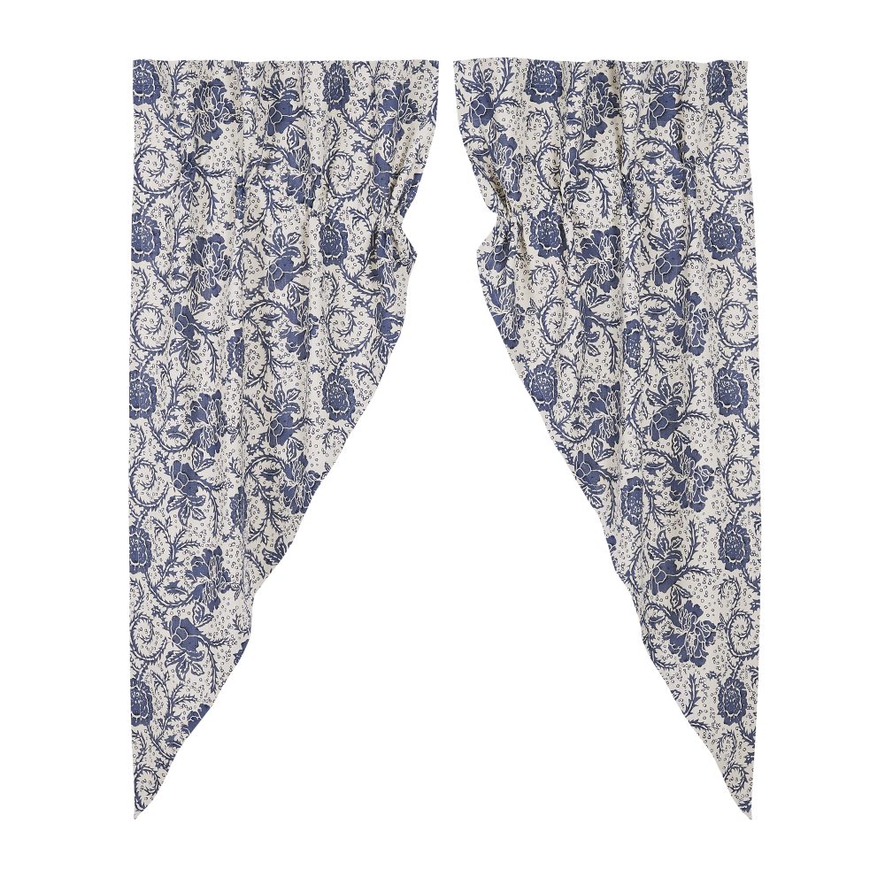 The Dorset Navy Floral Prairie Short Panel Set creates a relaxed country feel for your home. Featuring a beautiful navy blue floral design with a vintage feel, these curtains are a versatile choice for accenting kitchens, laundry rooms, and more. The gracefully angled drapes perfectly frame windows providing a bit of polish for your home. Our fully lined prairie panels come with built in drawstrings to adjust each panel to meet your style needs, along with a curtain rod pocket for easy hanging.