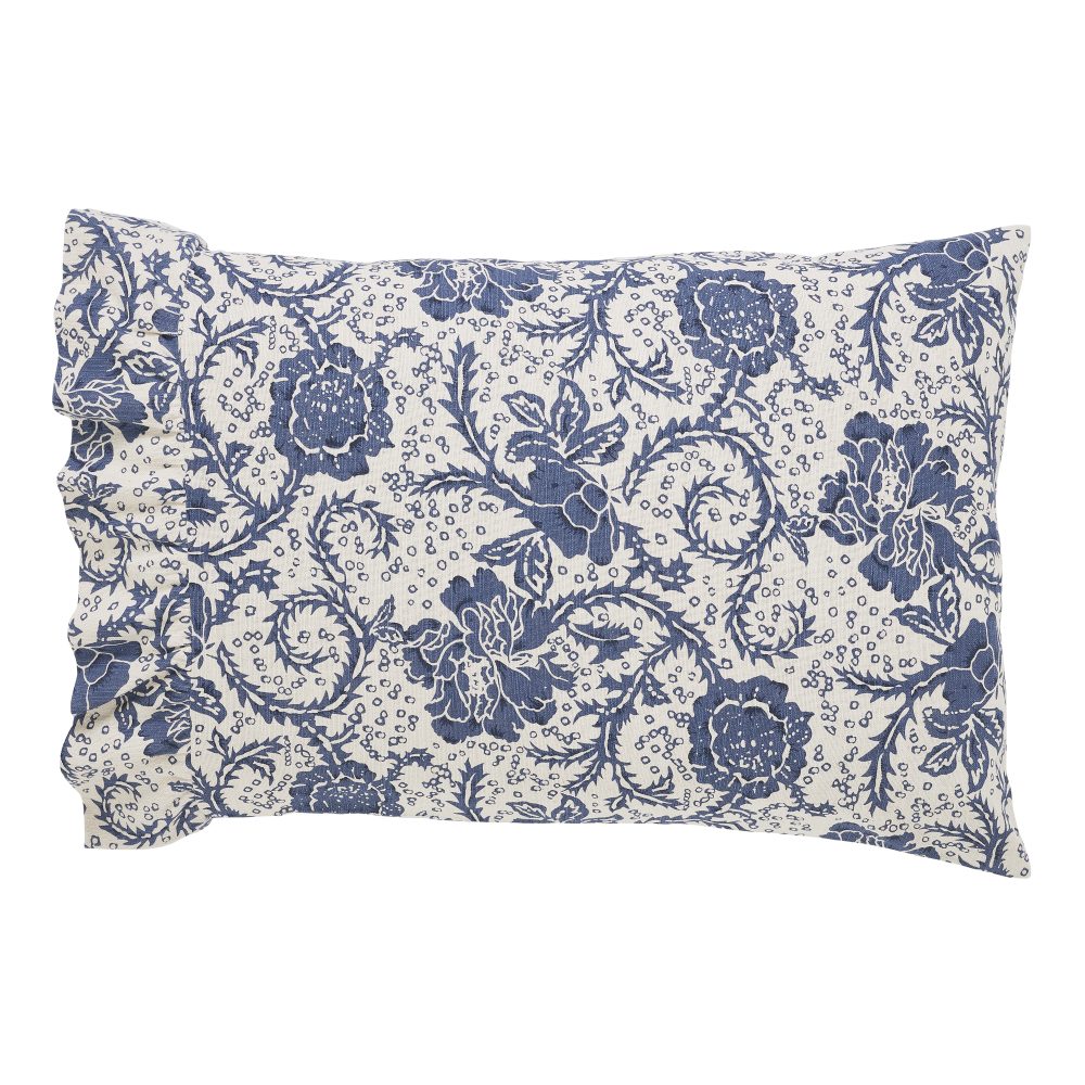 Accent your country bedroom with vintage floral and soft ruffles for a delightfully romantic look. The Dorset Navy Ruffled Standard Pillow Case Set includes two 21x26 pillow covers with additional 4-inch ruffles at the opening. Ruffled pillow cases are a great way to add a finishing touch to farmhouse bedding for a perfectly sophisticated and put-together feel. This cotton pillow slip set includes a delightful vintage floral pattern in navy blue against a natural cream base. The set features double-sewn seams for extra durability as well as extra length to ensure good coverage of your fill pillow (not included). Coordinates with the Dorset Collection by VHC for a complete elegant country look. Machine washable and iron safe.