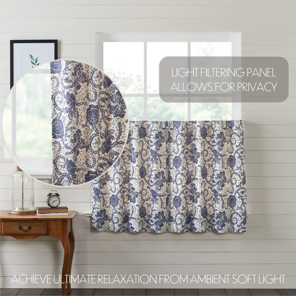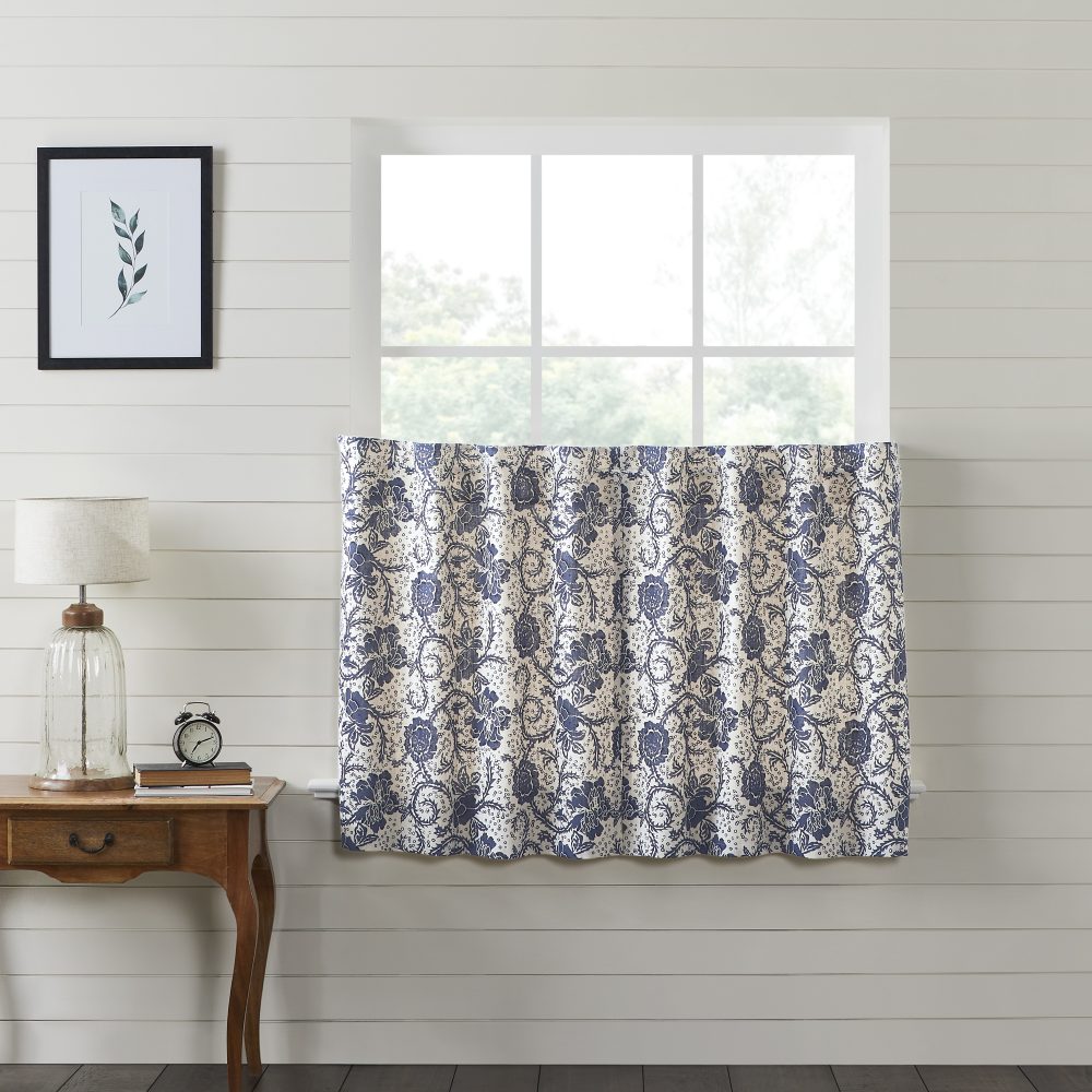 Create the perfectly charming country cottage window of your dreams with these 36 x 36 inch tier-style curtains. Featuring gorgeous navy blue vintage floral, the Dorset Navy Floral Tier Set provides just the right balance of privacy and sunshine. Pair with a matching valance or prairie swag for a fully decorated look or alone for a simple pop of color and character. Also known as cafe or bistro curtains, these are a particularly good fit for decorating vintage kitchens, laundry rooms, and small bathroom windows.